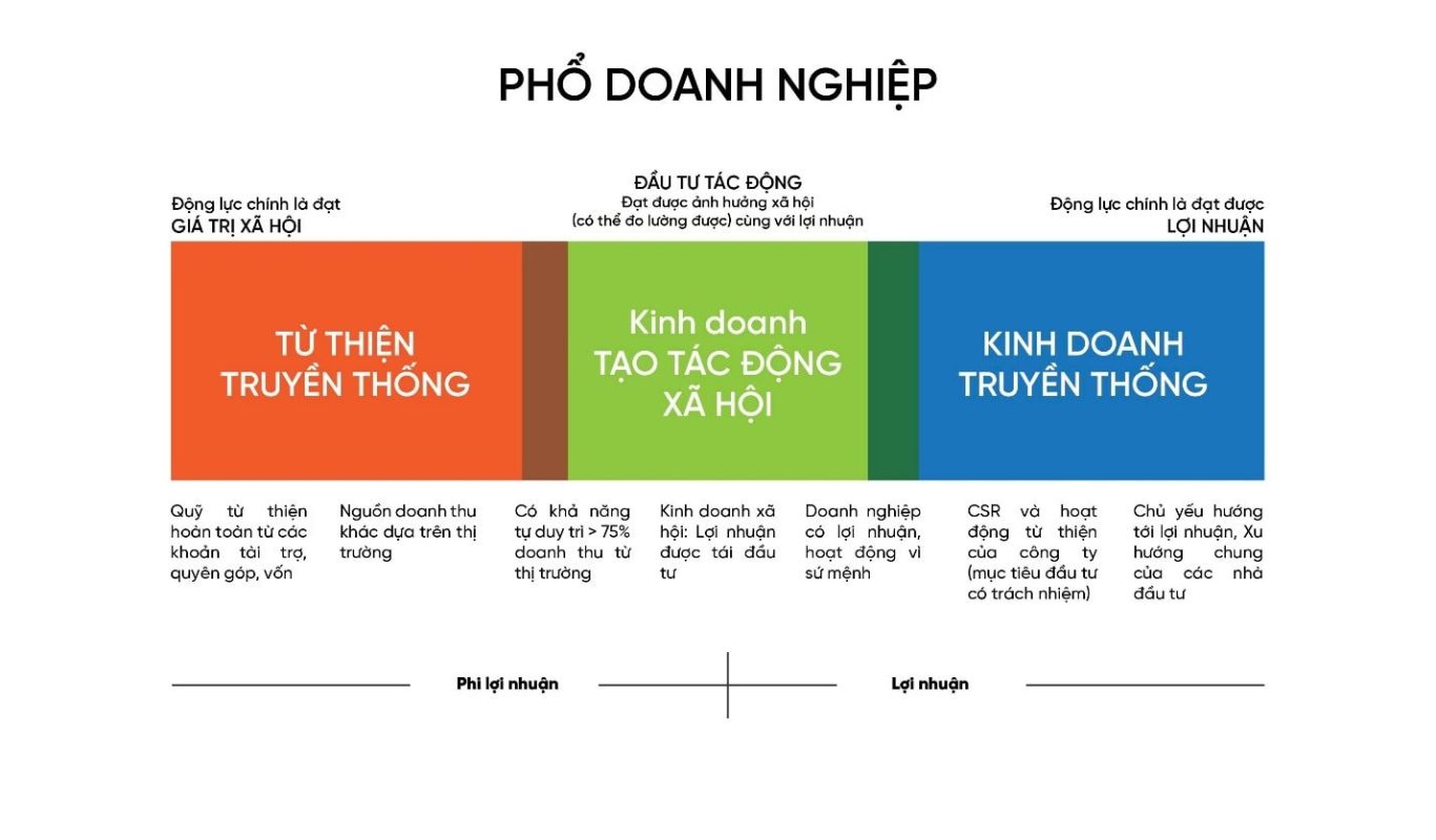 Tại Việt Nam, các mô hình phổ biến của tổ chức kinh doanh tạo tác động xã hội bao gồm: Doanh nghiệp xã hội (có đăng ký hợp pháp), hợp tác xã, doanh nghiệp phục vụ người thu nhập thấp và khởi nghiệp tạo tác động xã hội.